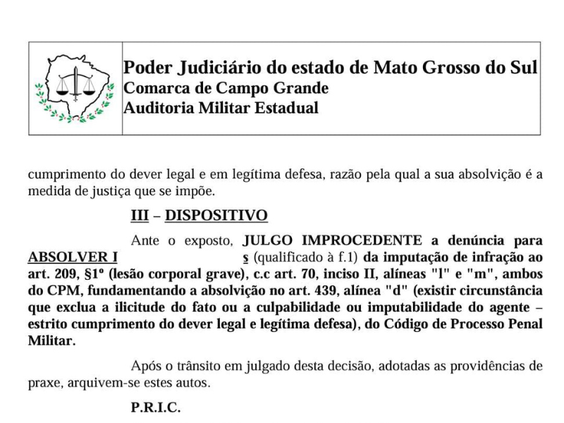 Associado Absolvido: Justiça Reconhece Dever e Legítima Defesa Mais uma vez, a força da união e o trabalho jurídico da ASPRA-MS mostraram resultados concretos para nossos associados. Um