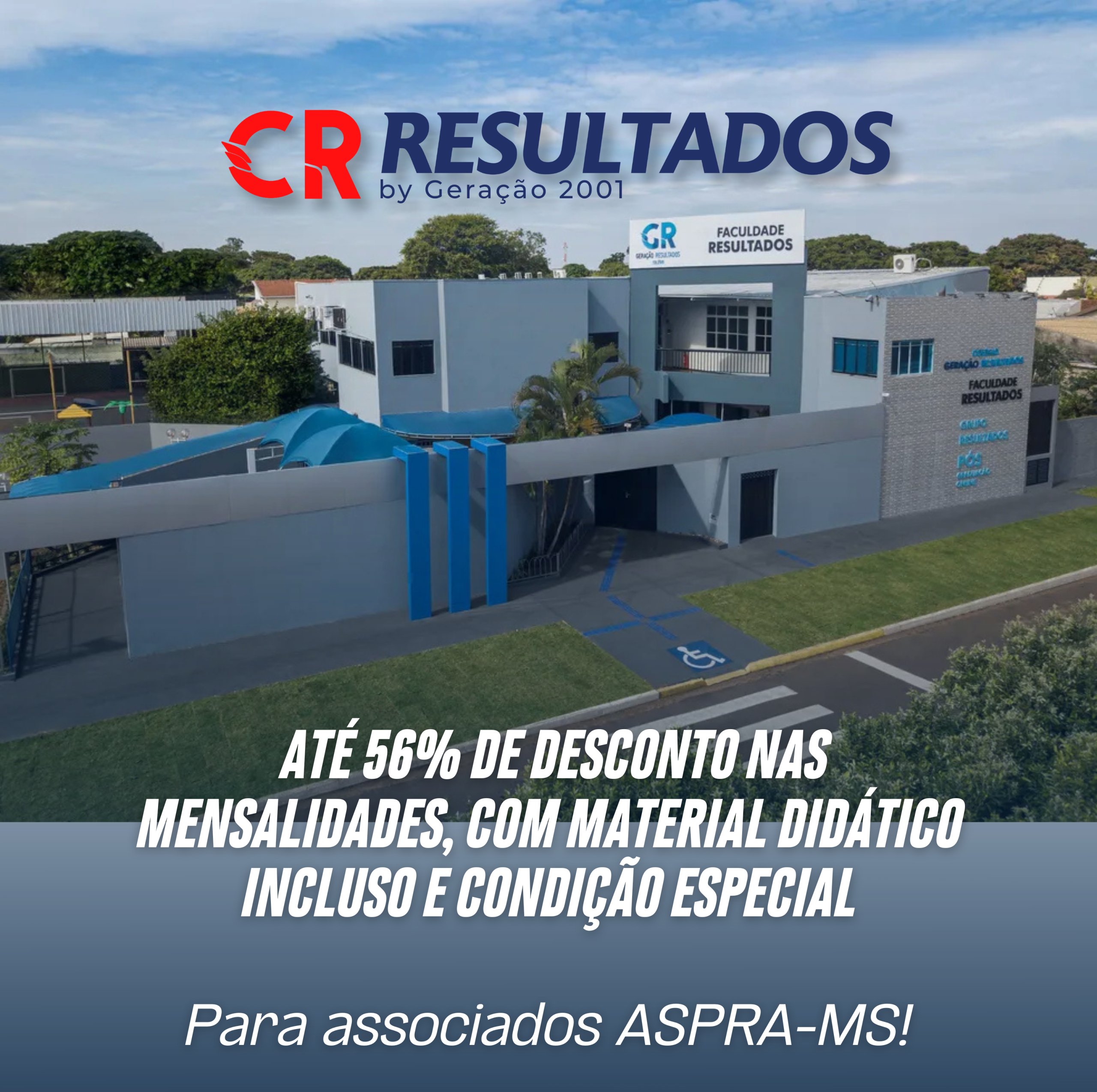 A ASPRA-MS firmou uma nova parceria com o Colégio Resultados (antigo Geração 2001), garantindo até 56% de desconto nas mensalidades para nossos associados e seus dependentes. O melhor