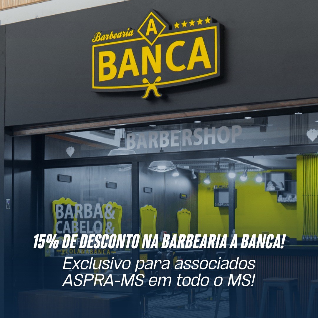 Visual em dia com desconto exclusivo para associados ASPRA-MS! Agora você tem 15% OFF na Barbearia A Banca, válida em todas as unidades do Mato Grosso do Sul!
