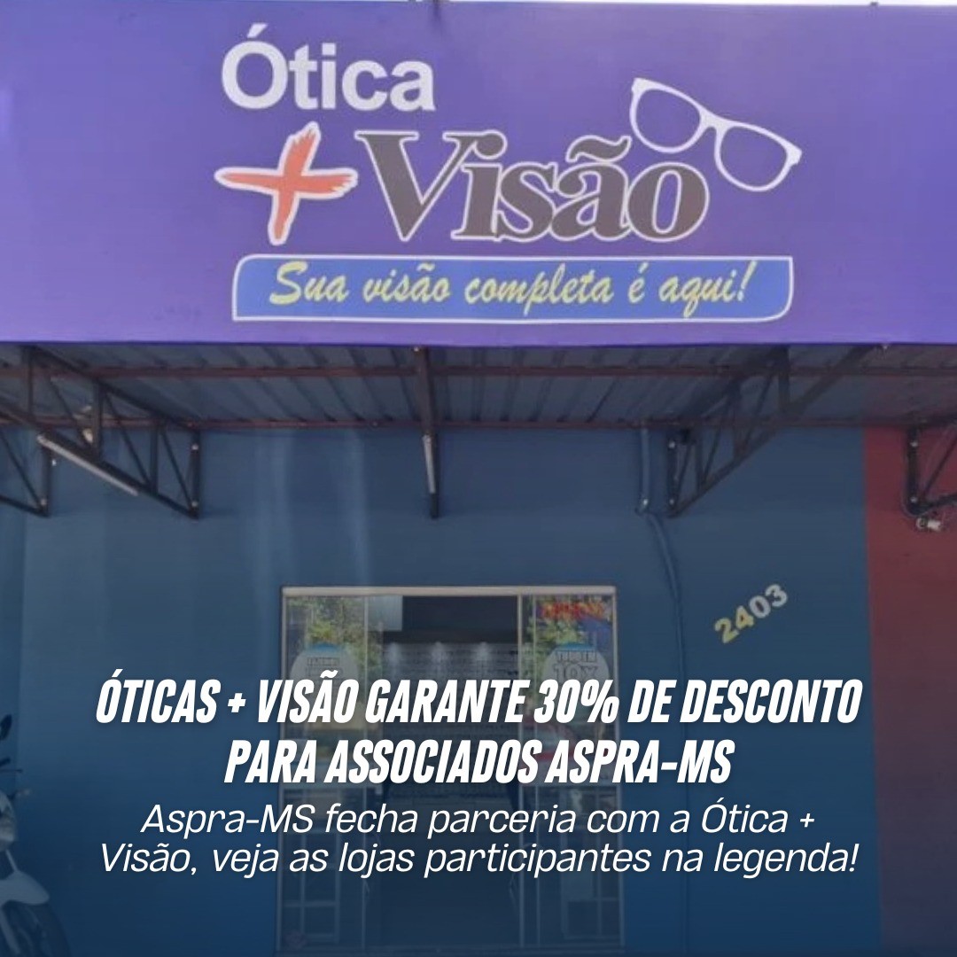 A ASPRAMS fechou uma parceria incrível com as Óticas + Visão, garantindo 30% de desconto nas suas compras! 😎 Aproveite esse benefício exclusivo e cuide da sua visão