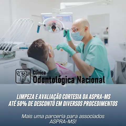 A ASPRA-MS segue ampliando benefícios para você! 🤝Agora contamos com parceria com a Clínica Odontológica Nacional, trazendo mais saúde e economia para nossos sócios. ✅ Limpeza e avaliação